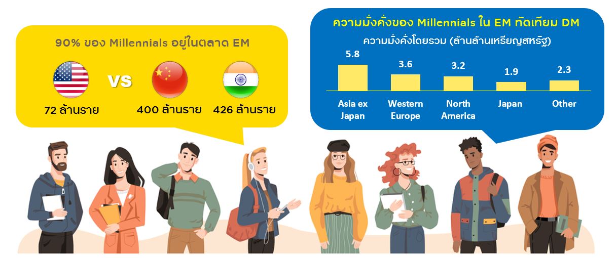 - คว้าหลากหลายโอกาสการลงทุนผ่านการบริโภคของคนกลุ่ม Millennials ที่ขับเคลื่อนด้วยเทคโนโลยี ไลฟ์สไตล์และความสนใจในการใช้ชีวิต
