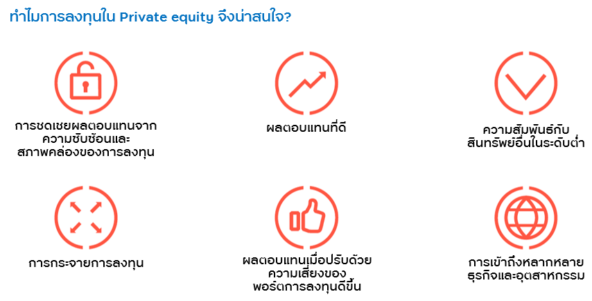 Private Equity คือ การลงทุนในหุ้นของบริษัทที่ไม่ได้จดทะเบียนซื้อขายในตลาดหลักทรัพย์ ซึ่งมีจุดเด่นที่ศักยภาพในการเติบโต