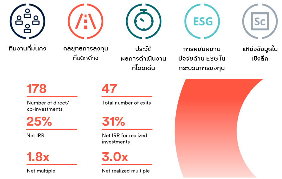 1. ทีม Schroders Capital ที่เป็นผู้เชี่ยวชาญด้านการลงทุนใน Private Equity และทีมผู้จัดการกองทุนที่มีประวัติการลงทุนที่แสดงถึงความเชี่ยวชาญที่มา: Schroders Capital ณ ปี 2565 | ข้อมูลจำนวนการลงทุนเป็นข้อมูล ณ ไตรมาส 3 ปี 2564 | ผลการดำเนินงานที่แสดงเป็นผลการดำเนินงานสุทธิหลังหักค่าธรรมเนียมต่างๆแล้ว โดยเป็นข้อมูล ณ ไตรมาส 2 ปี 2564 ในรูปสกุลเงินยูโร | Realized IRR และ Multiple อ้างอิงจากทั้งกำไรที่รับรู้แล้วทั้งหมด, กำไรที่รับรู้บางส่วน และ การเสนอขาย IPOs ณ 30 ก.ย. 2564 (มูลค่า IPO ประเมินจากมูลค่า ณ วันสุดท้ายของรอบไตรมาส)
