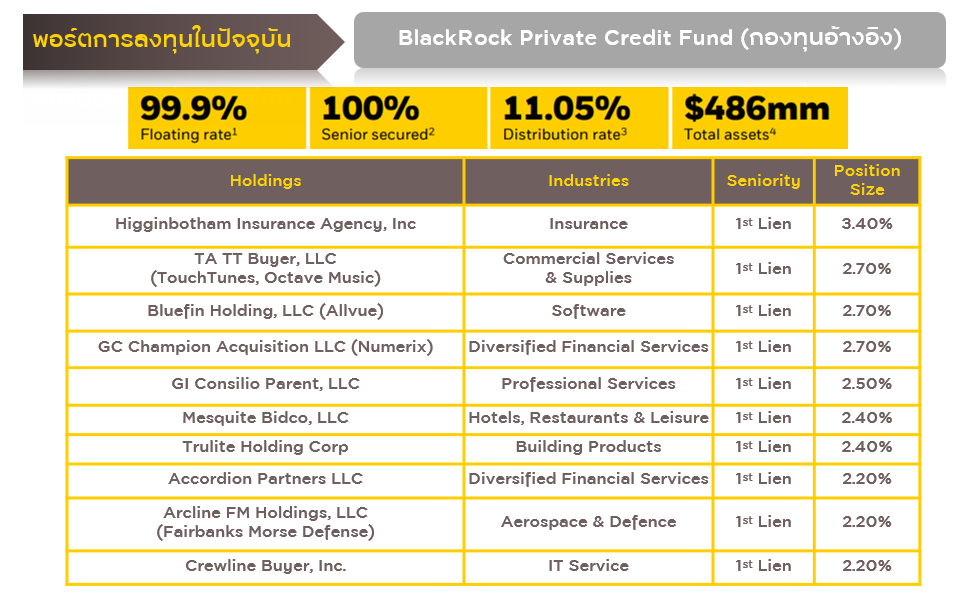 พอร์ตการลงทุนของ BlackRock Private Credit Fund (กองทุนอ้างอิง)