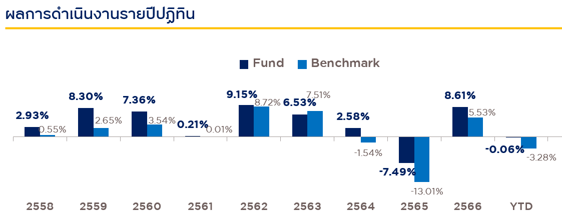 - ผู้ลงทุนควรทำความเข้าใจลักษณะสินค้า เงื่อนไขผลตอบแทนและความเสี่ยง ก่อนตัดสินใจลงทุน ทั้งนี้ ผลการดำเนินงานในอดีตของกองทุนรวมมิได้เป็นสิ่งยืนยันถึงผลการดำเนินงานในอนาคต