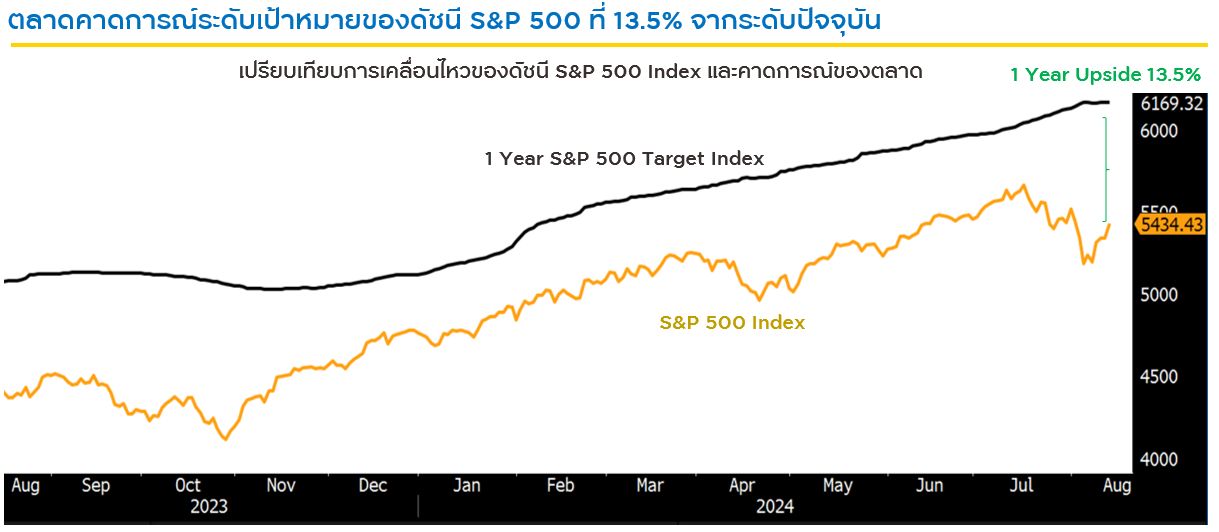 ที่มา: Bloomberg ณ 14 ส.ค. 67 | ข้อมูลข้างต้นแสดงมุมมองของตลาดต่อการเคลื่อนไหวของดัชนี S&P500 ซึ่งไม่ได้เป็นการรับประกันถึงผลตอบแทนที่จะเกิดขึ้นจริง และไม่ได้หมายความถึงผลตอบแทนที่กองทุนจะสร้างได้