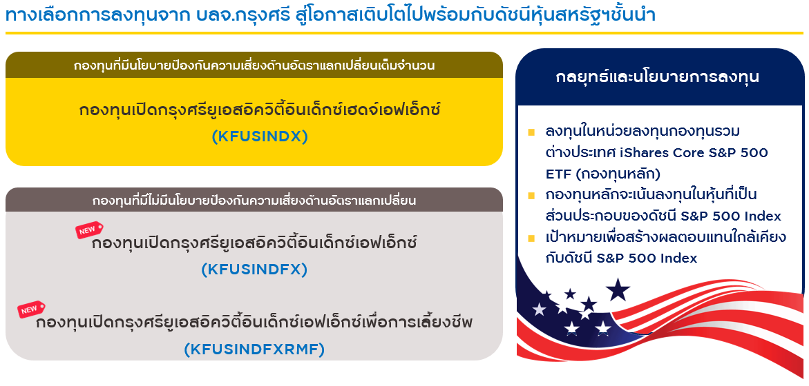 - กองทุนเปิดกรุงศรียูเอสอิควิตี้อินเด็กซ์เอฟเอ็กซ์ (KFUSINDFX)
