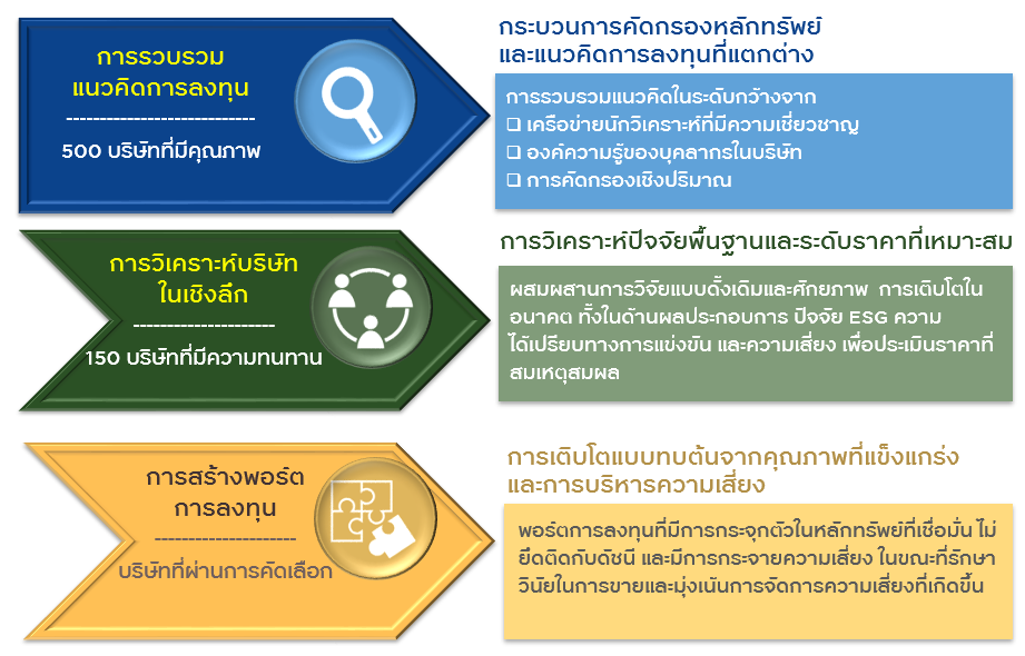 3. กรอบกลยุทธ์การลงทุนที่มุ่งเน้นการหาศักยภาพของหลักทรัพย์ โดยไม่ยึดติดกับดัชนีชี้วัด