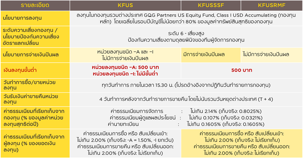 *สำหรับกองทุน KFUSSSF และ KFUSRMF