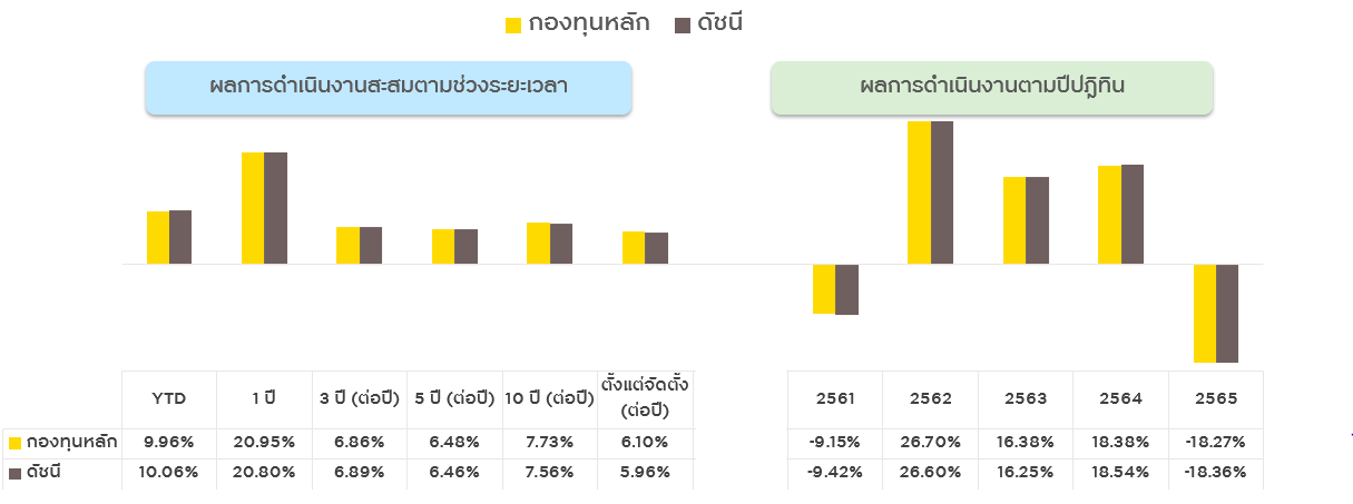 - กองทุนหลักมีผลการดำเนินงานที่เติบโตไปพร้อมกับตลาด