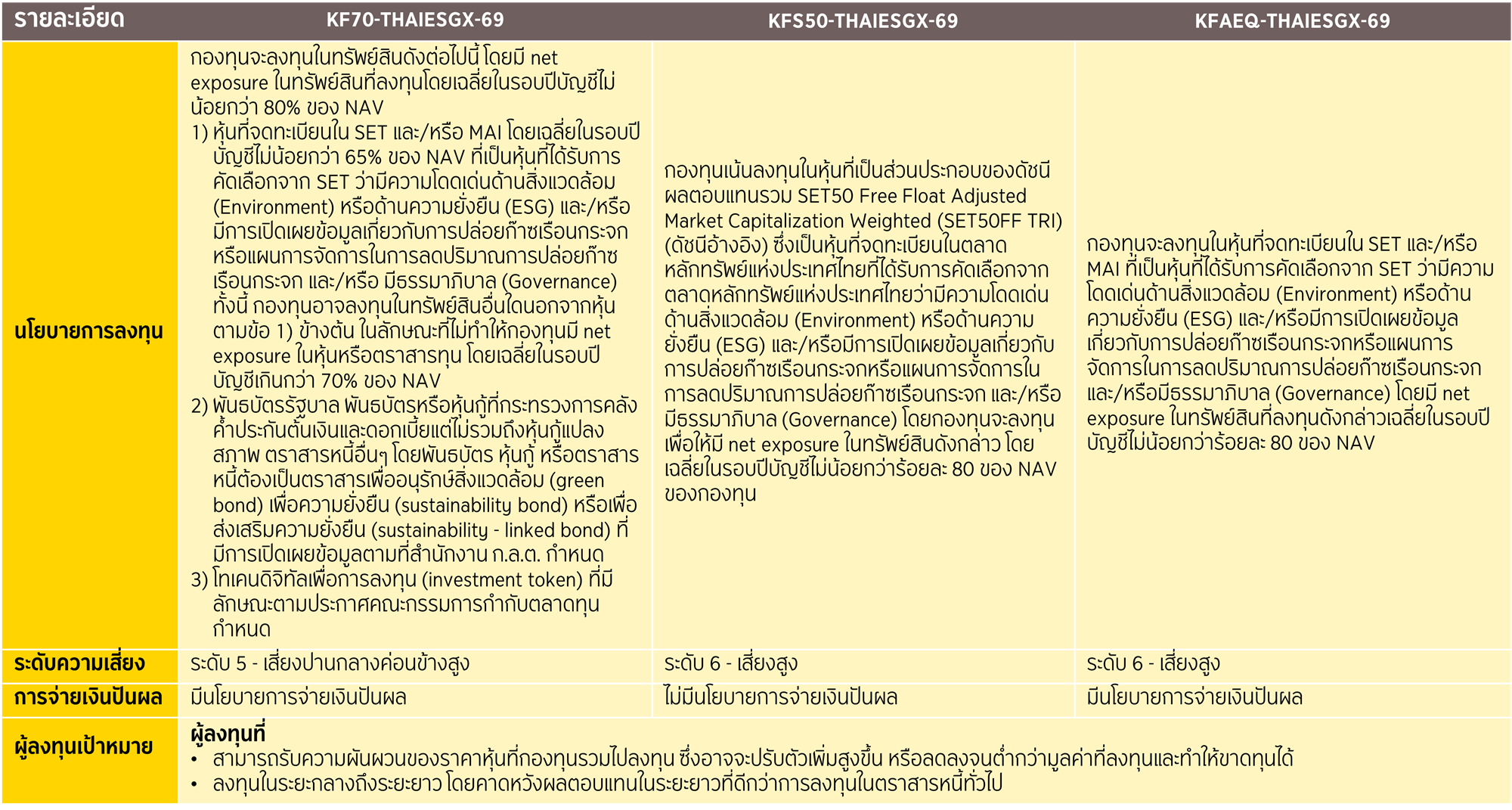 KF70-THAIESGX-69 | KFS50-THAIESGX-69 | KFAEQ-THAIESGX-69 เปิดขาย 5 ม.ค. นี้ เป็นต้นไป