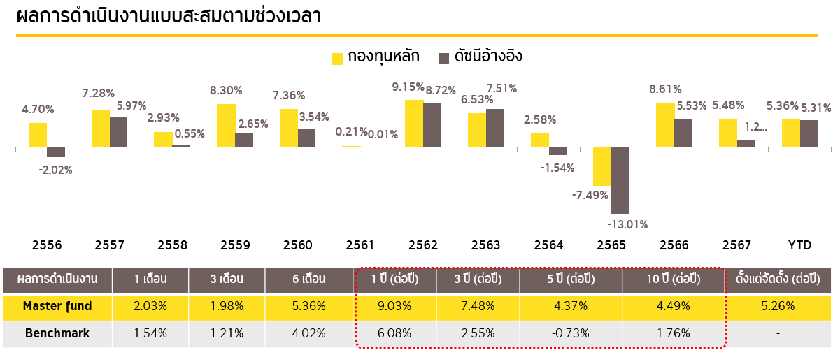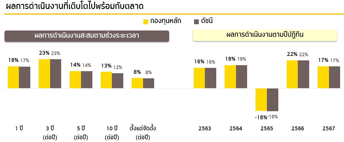 - กองทุนหลักมีผลการดำเนินงานที่เติบโตไปพร้อมกับตลาด