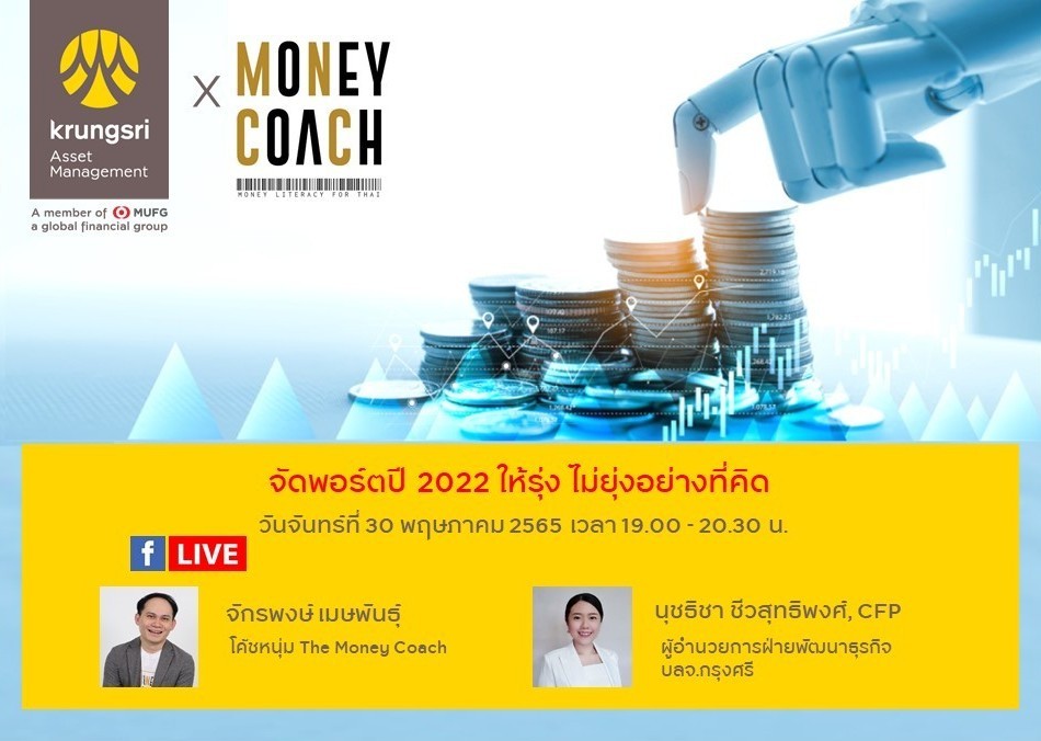 อัปเดตแนวทางการจัดสรรเงินลงทุนฝ่าความผันผวนทางเศรษฐกิจปี 2022 จากโค้ชหนุ่ม The Money Coach พร้อมแนะนำวิธีสร้างพอร์ตและจัดการพอร์ตการลงทุน แบบไม่ต้องลงมือเอง แต่ได้พอร์ตที่ตอบทุกเป้าหมาย ทำได้ง่ายและเป็นไปได้จริง