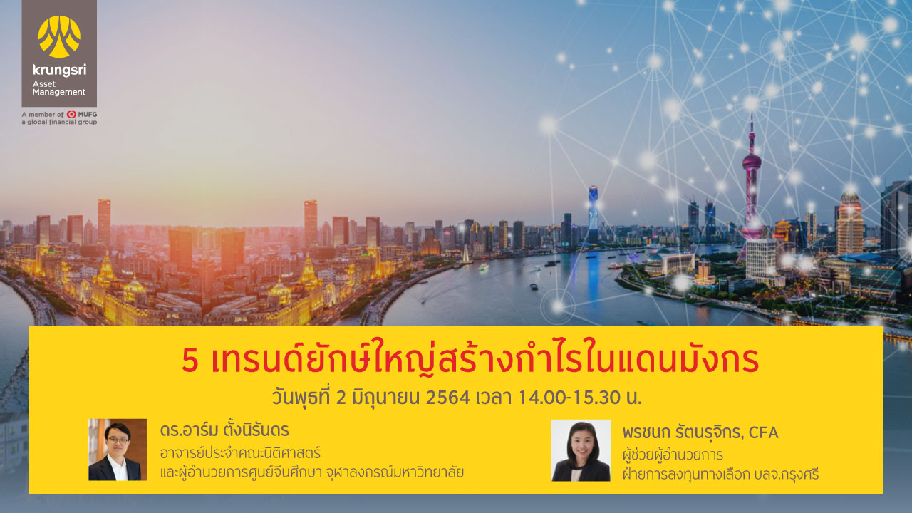มองภาพเศรษฐกิจจีนวันนี้และอนาคต จับเมกะเทรนด์มาแรงอย่าง E-commerce อินเทอร์เน็ต ธุรกิจสุขภาพ รถยนต์ไฟฟ้า และการลงทุนพลังงานทดแทนสูงสุดในโลก เปลี่ยนเป็นโอกาสลงทุนที่จะสร้างการเติบโตครั้งใหญ่ กับ KFCMEGA-A เข้าถึงการลงทุนใน 5 เทรนด์ยักษ์ใหญ่ของจีนในกองทุนเดียว