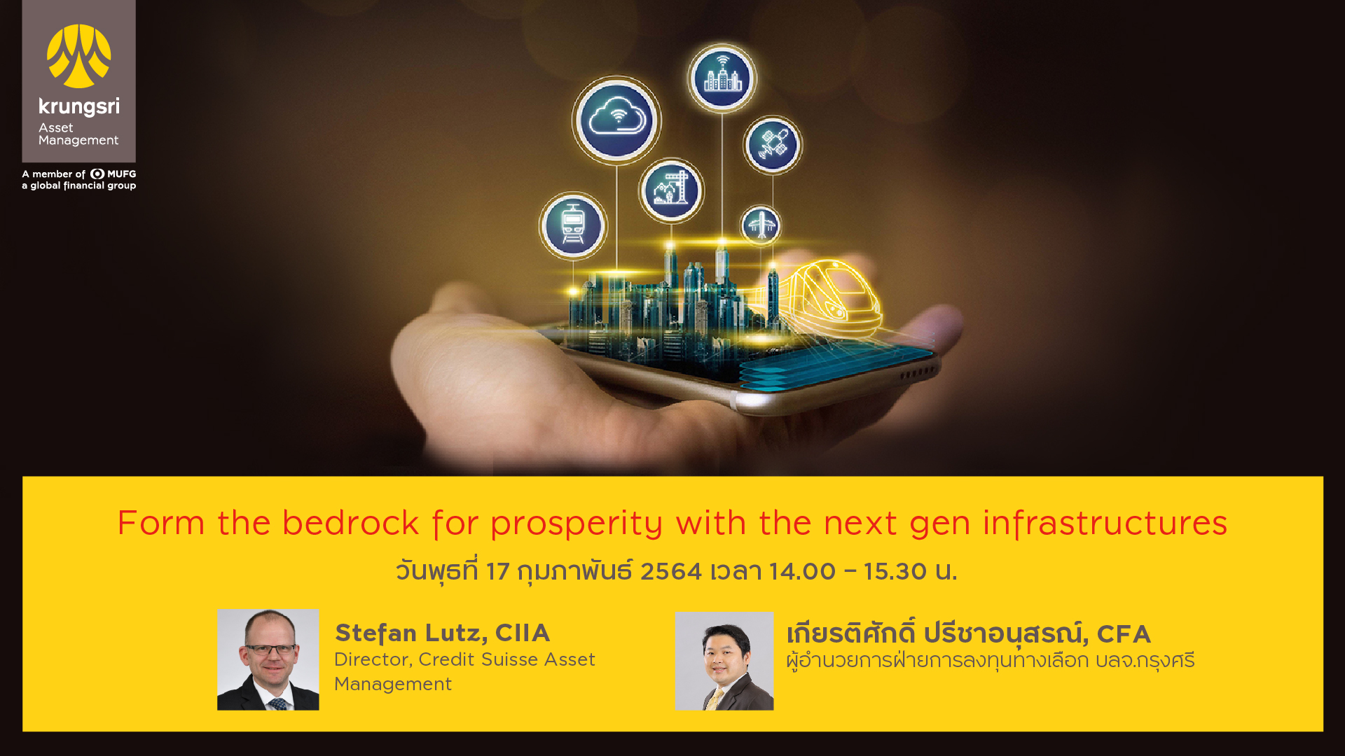 ท่ามกลางตัวเลือกการลงทุนมากมาย ทำไมธุรกิจโครงสร้างพื้นฐานถึงดึงดูดใจนักลงทุนได้อย่างต่อเนื่อง โดยเฉพาะโครงสร้างพื้นฐานยุคใหม่ที่ตอบรับกับโลกอนาคต ซึ่งมีการลงทุนขยายตัวทั่วทุกมุมโลก ค้นหาจุดเด่นและโอกาสลงทุนที่กำลังเติบโตอย่างแข็งแกร่งจาก Credit Suisse Asset Management ผู้บริหารกองทุนหลักของ KFINFRA-A และผู้จัดการกองทุนของ บลจ.กรุงศรี