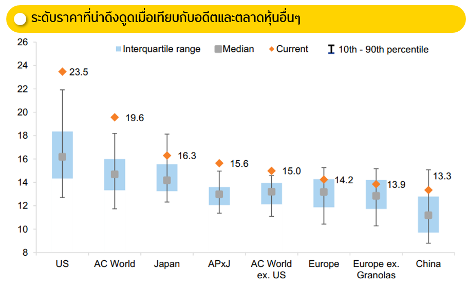 - หุ้นยุโรปมีมูลค่าถูกกว่าเมื่อเทียบกับสหรัฐฯ และคาดว่ากำไรบริษัทจะเริ่มฟื้นตัวอย่างมีนัยสำคัญตั้งแต่ปี 2026 เป็นต้นไป