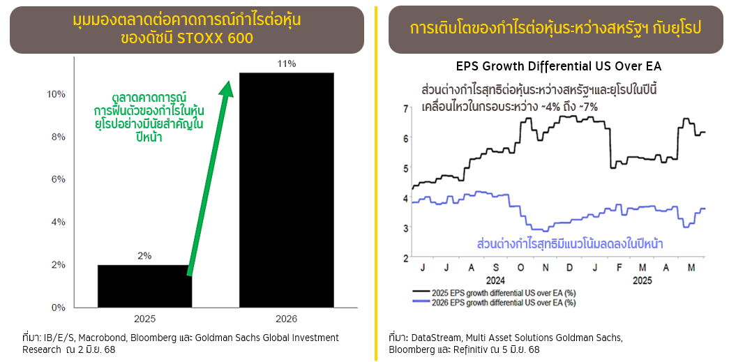 ที่มา: Multi Asset Solutions Goldman Sachs, Haver Analytics, Global Investment Research ณ 7 มิ.ย. 68 โดยอ้างอิงข้อมูลจาก Datastream, IB/E/S, STOXX, Goldman Sachs Global Investment Research; Datastream, Worldscope, Goldman Sachs Global Investment Research