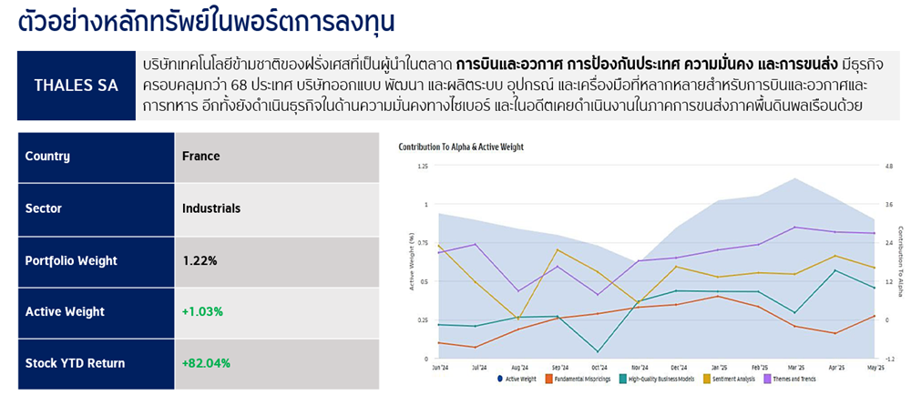 - สภาพแวดล้อมนี้เหมาะกับกลยุทธ์การลงทุน “Quantitative Investment Strategy” ของกองทุน Goldman Sachs Europe CORE® Equity Portfolio ที่ใช้ข้อมูลเชิงลึก (Data-driven) วิเคราะห์หุ้นกว่า 1,200 บริษัทด้วยตัวชี้วัดกว่า 200 - 400 ตัวเพื่อคัดเลือกหุ้นคุณภาพดี มีปัจจัยพื้นฐานแข็งแกร่ง เช่น งบดุลมั่นคง ผู้บริหารมีเสถียรภาพ ธรรมาภิบาลดี และราคาน่าลงทุน โดยใช้ AI และ Big Data วิเคราะห์ข้อมูลรายวัน พร้อมติดตามแนวโน้มตลาดอย่างต่อเนื่อง