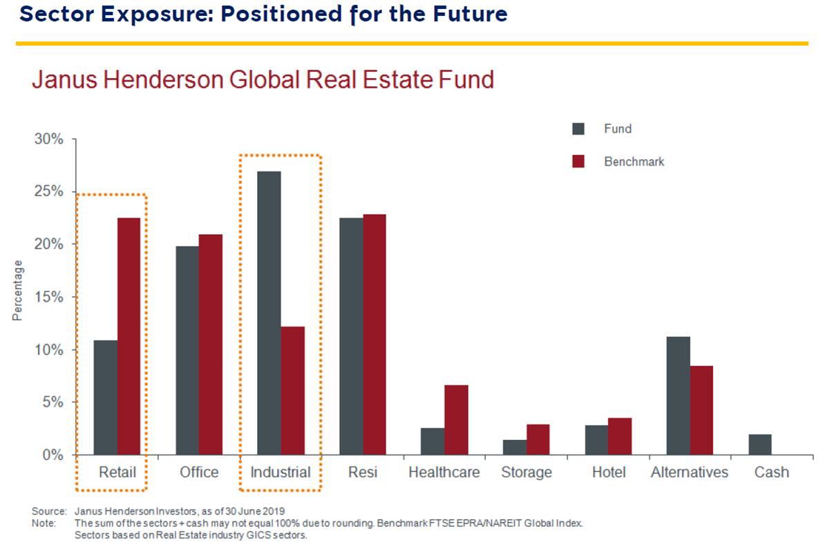 Xin Yang Low อธิบายเพิ่มเติมว่า นอกจากกองทุนให้น้ำหนักการลงทุนในสินทรัพย์ที่มีโอกาสการเติบโตสูงจากการใช้เทคโนโลยีเพิ่มมากขึ้นแล้ว กองทุนยังมองหาสินทรัพย์ที่เป็นตลาดเฉพาะกลุ่ม เช่น ธุรกิจสำนักงานให้เช่า สินทรัพย์เด่นของกองทุน ได้แก่ หุ้น Alexandria ซึ่งทำธุรกิจออฟฟิศให้เช่าในสหรัฐที่เป็นที่นิยมสำหรับธุรกิจที่มีการทำ R&D และอัตราการเช่าสูง และค่าเช่ามีแนวโน้มเพิ่มสูงขึ้นด้วย เป็นสินทรัพย์ที่กองทุนให้น้ำหนักการลงทุนสูงที่สุด หรือธุรกิจให้บริการที่อยู่อาศัยสำหรับผู้สูงวัย อย่างหุ้น Sun Communities ในสหรัฐ เป็นต้น