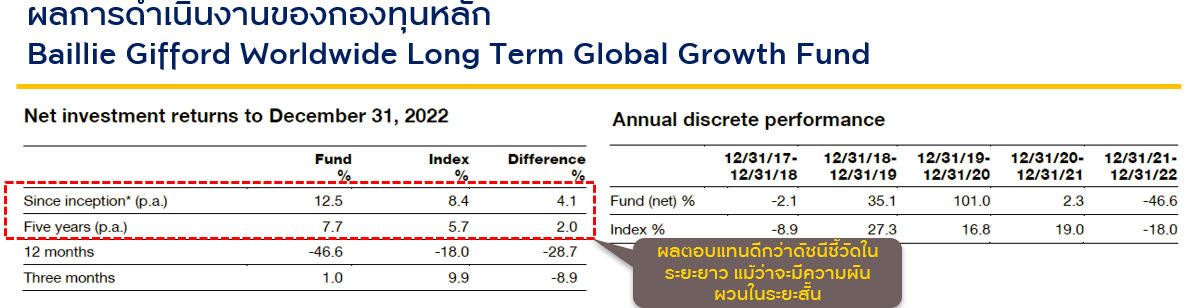- ผลการดำเนินงานที่ยอดเยี่ยม: กองทุนหลักมีประวัติการสร้างผลตอบแทนตั้งแต่จัดตั้งกองทุนที่เหนือกว่าดัชนี แม้ว่าจะมีความผันผวนในระยะสั้น
