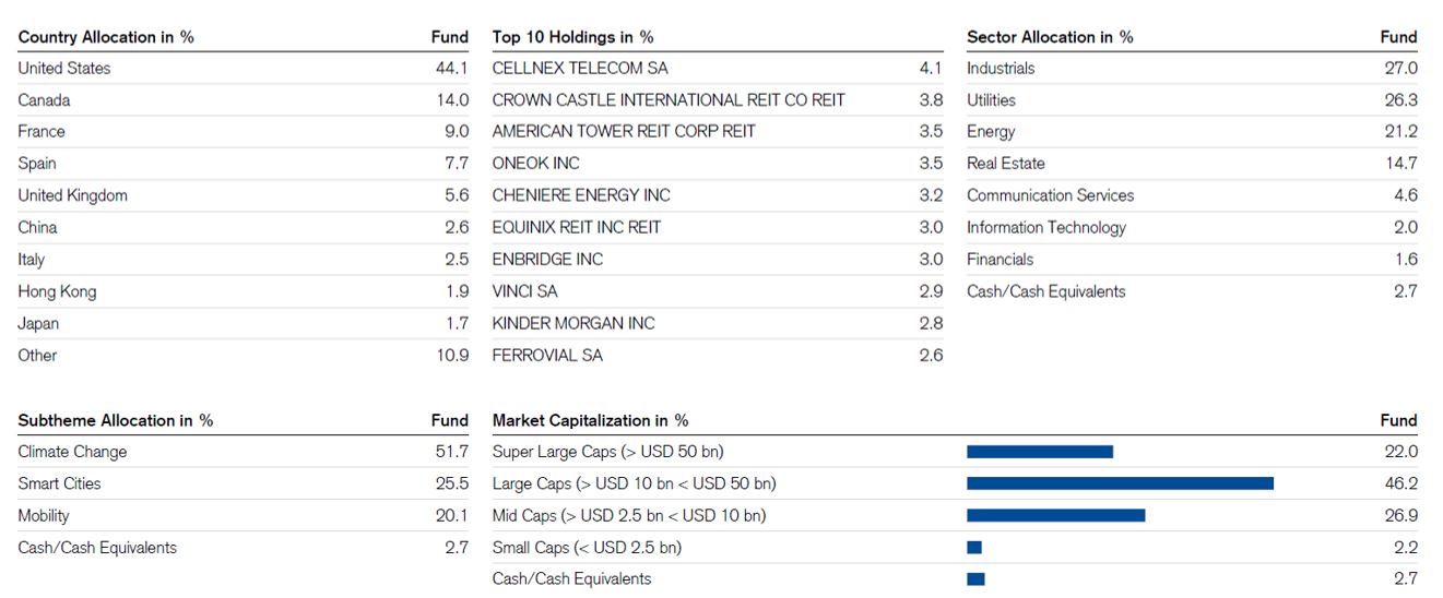 KFCLIMARMF/ KFCLIMASSF ลงทุนผ่าน DWS Invest ESG Climate Tech Fund กองทุนหลักที่เชี่ยวชาญการลงทุนในธุรกิจที่มีแนวคิดด้านสิ่งแวดล้อม (ESG) ได้แก่ ธุรกิจที่มีเทคโนโลยีที่ช่วยลดภาวะโลกร้อน เช่นรถยนต์ไฟฟ้า พลังงานทดแทน อาคารอัจฉริยะประหยัดพลังงาน ซึ่งมีสัดส่วนการลงทุนอยู่ที่ประมาณ 66 % และธุรกิจที่มีเทคโนโลยีที่สามารถลดผลกระทบและแก้ไขปัญหาที่เกิดจากการเปลี่ยนแปลงของสภาพภูมิอากาศ เช่น ธุรกิจบริหารจัดการน้ำ จัดการขยะ การเกษตรอัจฉริยะ ในกลุ่มนี้มีสัดส่วนการลงทุนอยู่ที่ประมาณ 34% พอร์ตการลงทุนจะเน้นในหุ้นขนาดใหญ่โดยให้น้ำหนักในตลาดสหรัฐอเมริกาและยุโรปเป็นหลัก ที่เหลือกระจายไปในภูมิภาคอื่นๆ ทั้งนี้ กลุ่มอุตสาหกรรมนี้ได้รับการสนับสนุนเชิงนโยบายและเริ่มมีการบังคับใช้ในทุกประเทศ จึงมีโอกาสที่จะเติบโตได้ในระยะยาว